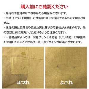 この製品は大和被服(株)が、消防局から廃棄消防服を引き取り実現した取り組みとなります。したがって万が一製品販売に対する不良・不備があった場合、消防局にお問合せいただいても対応が出来ません。